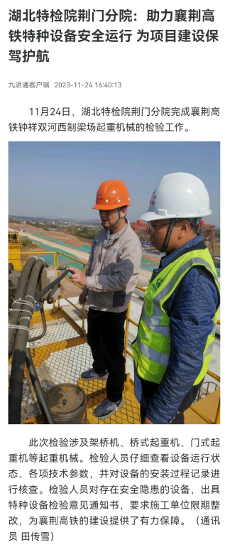 九(jiǔ)派通(2025年12月3日(rì))厦门成同机电制造有限公司荊門分院:助(zhù)力襄荊高鐵(tie)特種設備安(ān)全運行㊙️人人干🚩97🌈 為項(xiang)目建設保駕(jia)護航